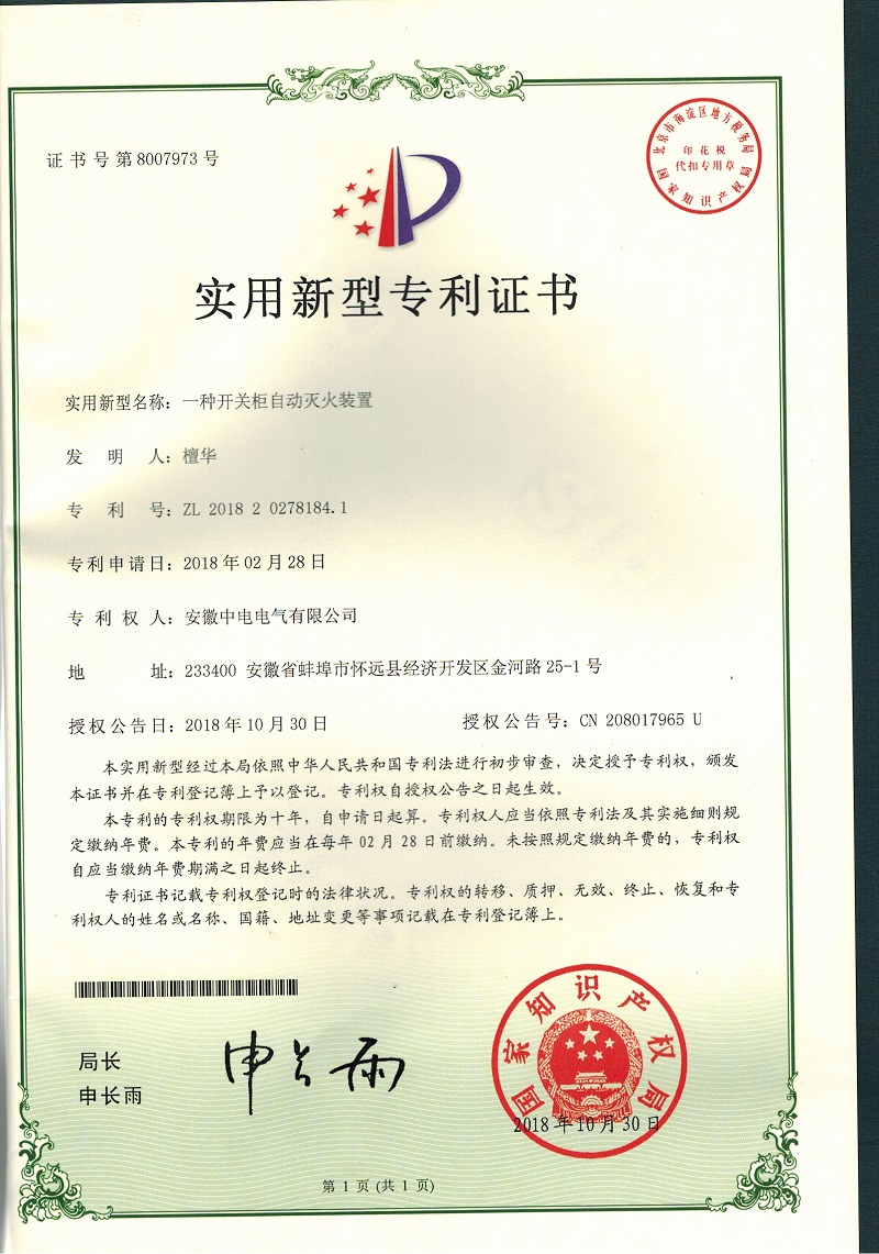 證書(shū)-開(kāi)關(guān)柜自動(dòng)滅火裝置