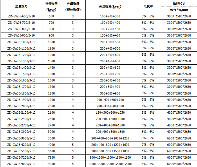 ZG-GWJ裝置適用于3~35kV系列電力系統(tǒng)中,用以補(bǔ)償系統(tǒng)無(wú)功功率,提高功率因數(shù),調(diào)整電網(wǎng)電壓,降低線路損耗,改善供電質(zhì)量,提高供配電設(shè)備的使用效率,容量可從數(shù)百千乏到數(shù)萬(wàn)千乏。該裝置在主接線型式、保護(hù)方式、限制涌流及抑制諧波過(guò)負(fù)荷等方面進(jìn)行了綜合考慮,以保證運(yùn)行安全可靠;裝置結(jié)構(gòu)簡(jiǎn)單、緊湊,便于現(xiàn)場(chǎng)安裝和維護(hù);可用于冶金、礦山、石油、化工、機(jī)械、建材、市政、輕工等行業(yè)。