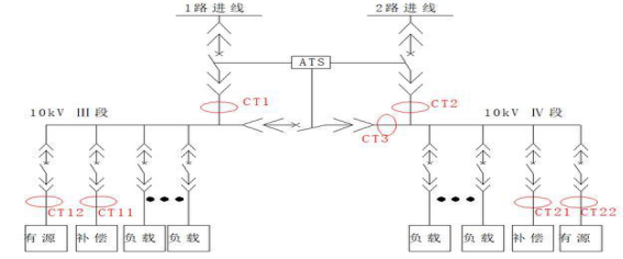 e)、兩段母線進線工作方式不確定性:兩段母線有可能獨立工作、有可能并聯(lián)工作、有可能一段進線帶兩段負荷。