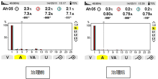 江西某水利局供電系統(tǒng)存在大量的諧波源負載:整流還原爐(12脈)、制氫設(shè)備(12脈)、可控硅調(diào)溫設(shè)備(6脈)、UPS設(shè)備(6脈)等,這就使得在該供電體統(tǒng)中存在大量的諧波電流,諧波電流主要以5、7、11、13次為主;大量諧波的存在嚴重干擾了其他負載的安全運行、產(chǎn)生計量誤差、影響設(shè)備使用壽命。